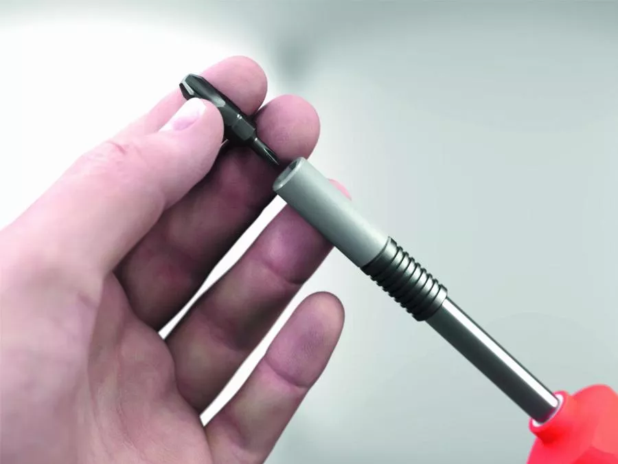 - Avec sa forme élancée, le porte-embout Superslim permet également d’atteindre des vis par exemple dans des trous borgnes lorsque d’autres porte-embout « plus épais » doivent déjà renoncer.